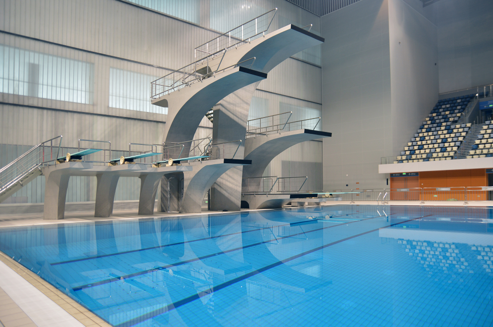 游泳館包含5座泳池。競賽池: 1250平方米; 跳水池: 625平方米;熱身池: 1250平方米;戲水池:250平方米;放松池: 7平方米。