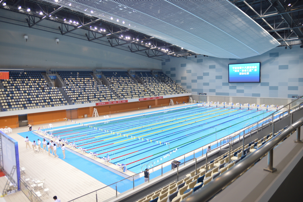 作為寧波市大型的國際游泳專業比賽場館,寧波奧體中心游泳館建筑面積達3.6萬平方米,館內設有約3300個座席,擁有兩座標準泳池、一座標準跳水池、一座25米短池,既可以承辦國際游泳賽事也能滿足全民運動所需,市民可盡享水上賽事的視覺沖擊與運動的極致體驗!