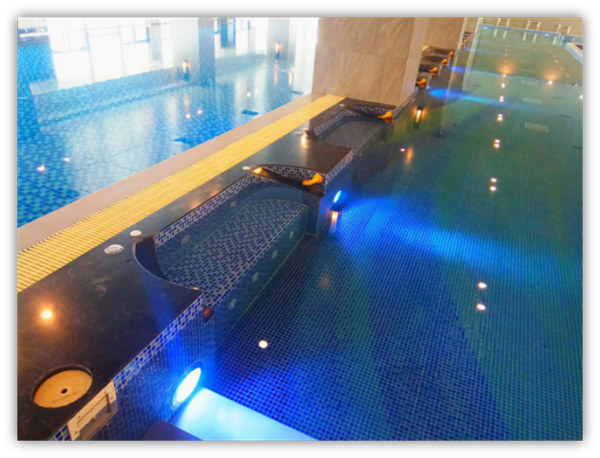 酒店泳池區設在三樓,其功能規劃、水體處理、空氣處理系統設計及供貨安裝皆由“水環境領航者”——聯盛水環境工程有限公司打造,項目包含主泳池、水療按摩池、教學池、漩渦池、溫泉區、桑拿區以及休息區,除了溫泉區的冰水池是制冷的,其余水體都是具備恒溫加熱的條件。那么,下面我們就詳細地介紹一下順德康威斯酒店在泳池及其他水休閑項目的情況,看看康威斯酒店是如何體現服務的。