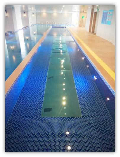 教學池配置的不銹鋼水底鏡讓學游泳者與教練可以清晰看到自己的泳姿并加以矯正,可以有效輔助更快學成游泳技能,更貼心地考慮客戶的需求。教學池設計水深是1米,設計水溫是28℃。
