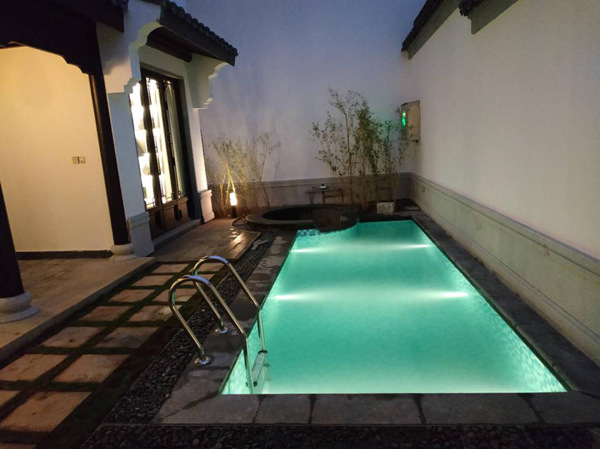 春沐源生態小鎮溫泉酒店和餐廳項目溫泉設備安裝工程由“水環境領航者”——聯盛水環境工程有限公司打造,包含4個游泳池、13個溫泉泡池以及3個民宿二層溫泉浴。游泳池采用地埋式一體化過濾設備,配置了石英砂循環過濾系統和消毒系統,確保水質滿足最新的《游泳池水質標準》CJ/T-2016要求。