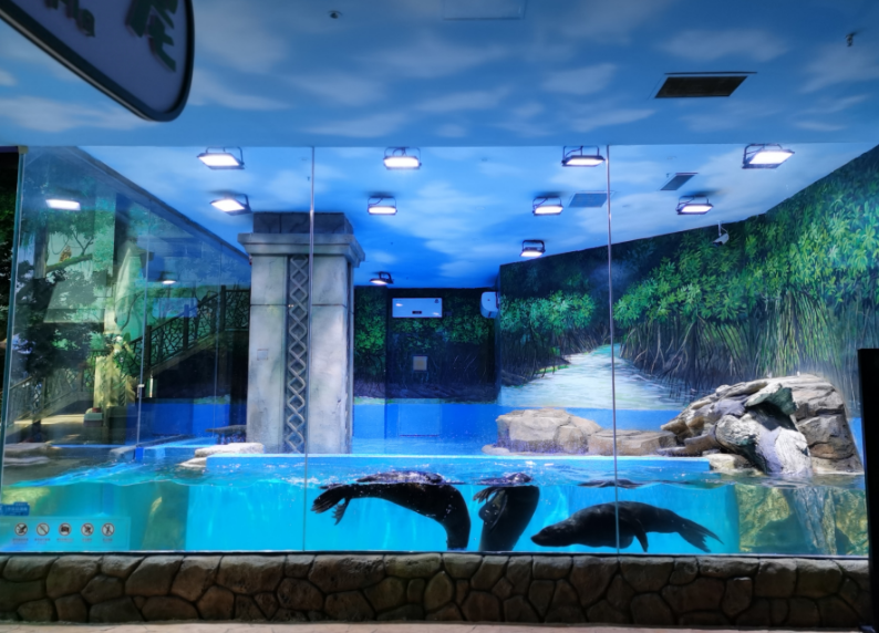 海洋館水體量為8000m3,含海洋主池、海獅表演主池、海水魚缸、淡水魚缸、水母缸等58個缸體。