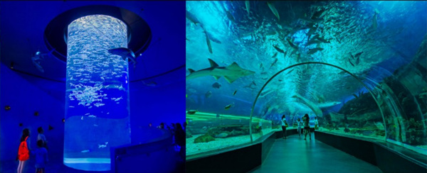 香港海洋公園三面環海,東瀕深水灣,南臨東博寮海峽,西接大樹灣。占地87萬平方米,是亞洲最大的海洋公園。它包括海洋天地、集古村、綠野花園、雀鳥天堂、山, 上機動城、急流天地、水上樂園、兒童王國等八區。該園分山上和山下兩部分,有空中纜車溝通。山下為水上樂園,是亞洲第一個水上游樂中心;山上是海洋公園的主要部分,有海洋館、海濤館、海洋劇場、百鳥居。
