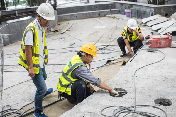 鑒于項(xiàng)目本身造型特殊又位于250米高空,且建筑體對(duì)配套工程要求較高,現(xiàn)場(chǎng)鋼結(jié)構(gòu)、鋼筋混凝土、玻璃幕墻等組合方式復(fù)雜等情況,對(duì)前期設(shè)計(jì)及施工配合要求非常高,需各單位緊密合作。聯(lián)盛公司大膽采用高科技含量新工藝,在高空花園上呈現(xiàn)滿足人體最佳舒適感的生態(tài)水系環(huán)境。