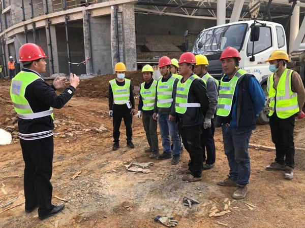 聯盛工程主管在組織完吊裝安全教育后開始進行吊裝工作。