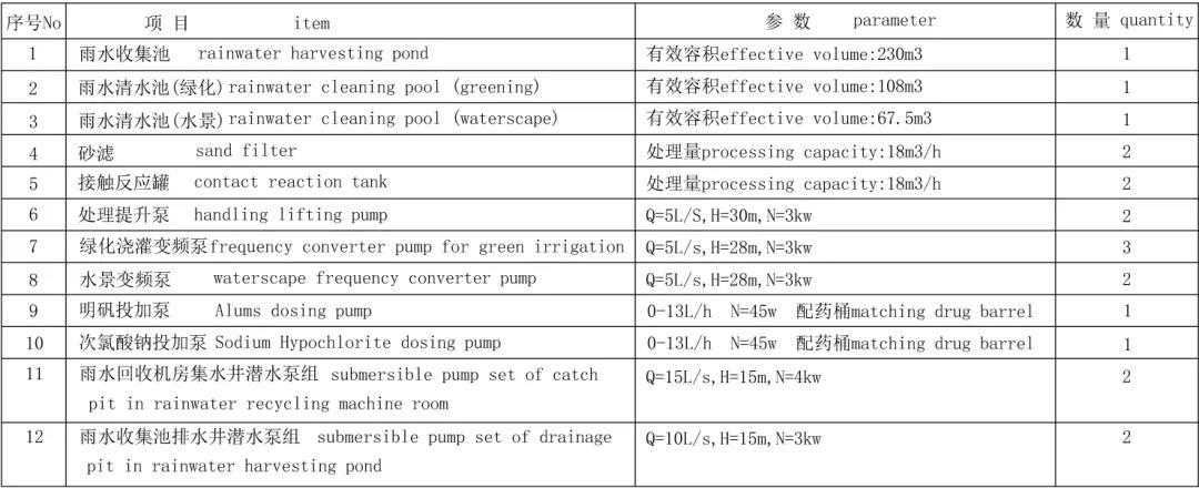 雨水經(jīng)過收集管道進(jìn)入一臺(tái)容積不小于230m3的原水箱,以調(diào)節(jié)水質(zhì)、水量。