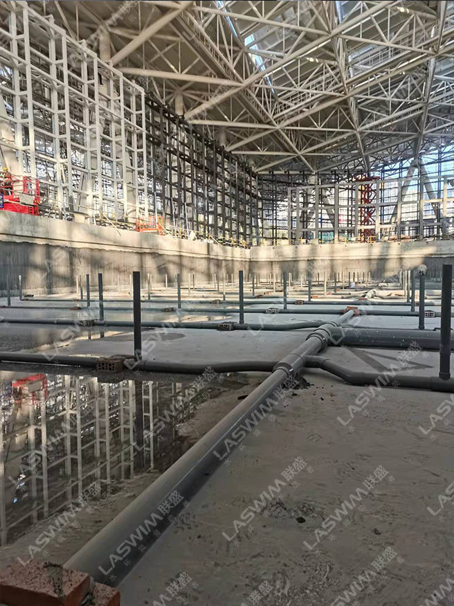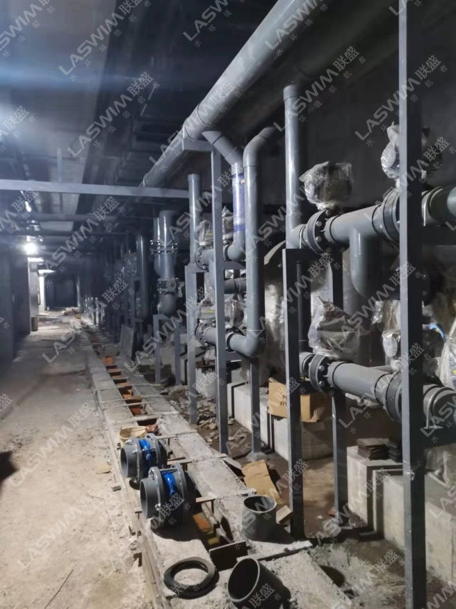“水環境領航者”——聯盛水環境工程有限公司于2020年中標此項目,目前游泳館主設備已經安裝到位,聯盛公司的工程人員正全力進行設備連接安裝,確保游泳館水處理系統按時交付。