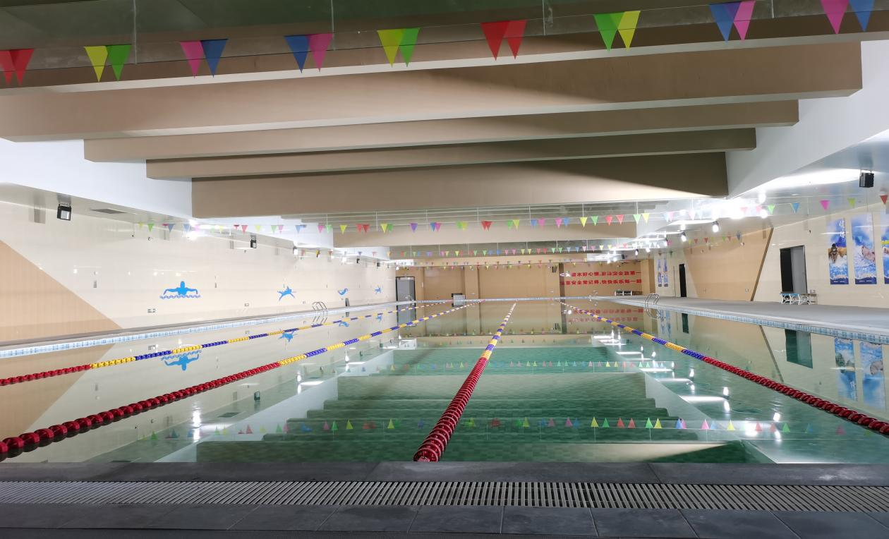 西安高新區(qū)第四完全中學(xué)是2020年由西安高新區(qū)管委會創(chuàng)辦的一所公辦完全中學(xué),由初中部、高中部、行政樓、行健樓共4棟主體建筑構(gòu)成。校園建有標(biāo)準(zhǔn)游泳館、室內(nèi)籃球館、學(xué)科實(shí)踐教室、校園電視臺、心理輔導(dǎo)室、圖書館、報(bào)告廳、階梯教室等特色功能部室。“水環(huán)境·生態(tài)行家”——廣東聯(lián)盛水環(huán)境工程有限公司參與了游泳池建造。游泳池面積為50*13.5m2,深度為0.9-1.35m。
