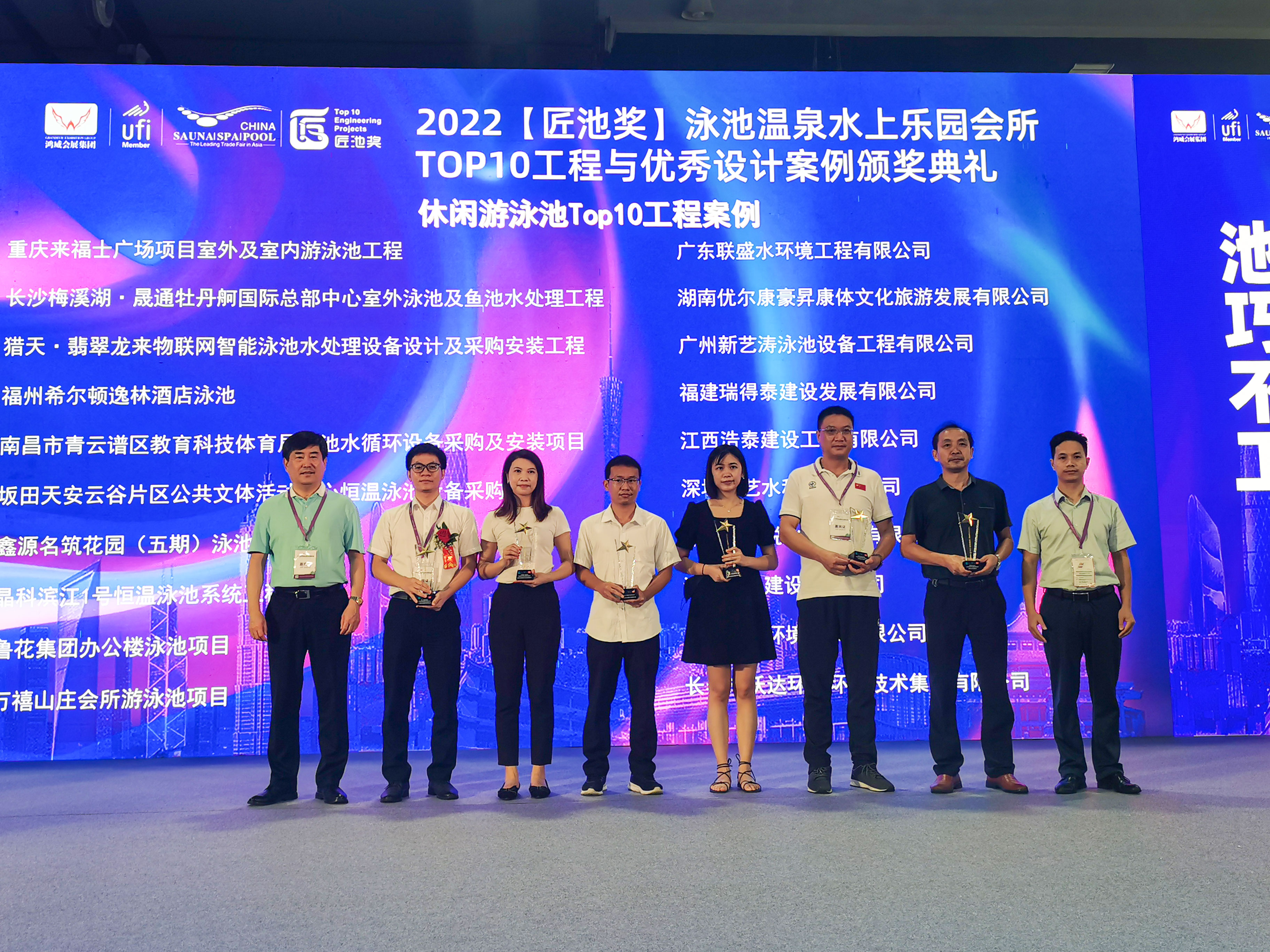 2022年8月12日,2022年匠池獎TOP10工程案例頒獎典禮在廣州·廣交會展館舉行,現(xiàn)場一批行業(yè)專家、品牌企業(yè)及知名設(shè)計師蒞臨參加,共同見證了溫泉Top10工程案例、泳池Top10工程案例、水上樂園 Top10工程案例、Top10創(chuàng)意設(shè)計獎等優(yōu)秀獎項的評選和頒發(fā)。