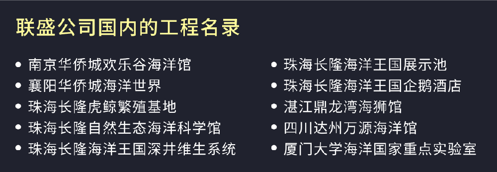 聯盛公司擁有專業的海洋科技團隊,可為業主提供定制式的管理服務與專業維護人員培訓服務,聯盛以多年的專業技術培訓經驗讓業主方及后期維護團隊能夠快速全面地熟悉飼養海洋生物各環節流程的技能,培訓內容包含維生設備管理、生物飼養管理、生物防疫治療、設備保養管理等專業、完善的培訓內容。